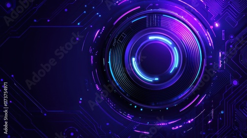 Abstract Futuristic Technology Background: Neon Circuitry and Glowing Interface