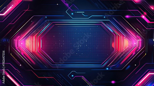Abstract futuristic technology background with glowing neon lines and digital elements.
