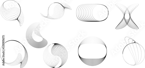 Abstract geometric circles with halftone dots. Vector rotating dotted Line Design . Transparent design element . Concentric circles logo set .Minimal art