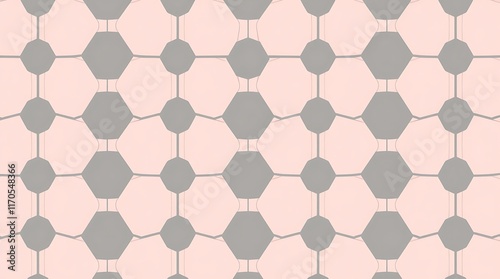 Abstract Geometric Pattern: A seamless, geometric pattern with a subtle, elegant design. The pattern features interlocking hexagons and circles in soft gray and blush pink colors.