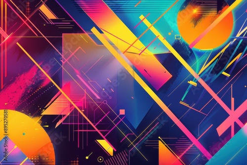 Abstract geometric pattern in vibrant neon colors.