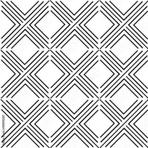 Abstract geometric pattern with squares, crosses, stripes, lines. Seamless vector background. White and black ornament. Modern reticulated graphic design.