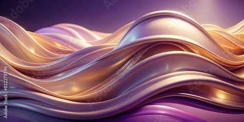 Abstract glowing beige and lilac liquid wavy bubbling pearlescent foils on a lilac background, futuristic space science fiction background, 3d