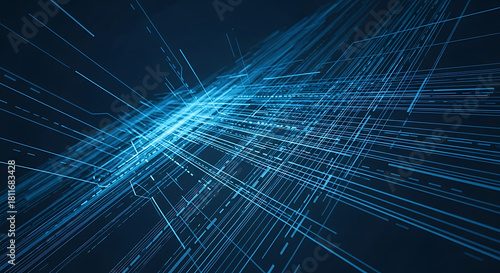 Abstract glowing blue digital network lines connecting in a futuristic cyberspace