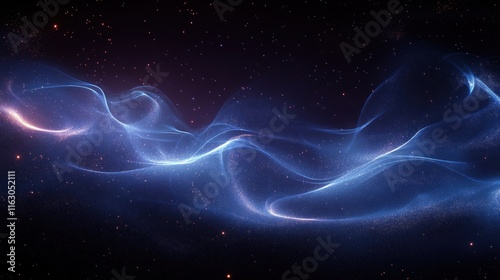 Abstract glowing blue wave in dark space with stars.