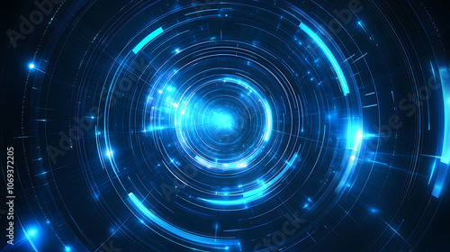 Abstract glowing circle lines on dark blue background, Geometric stripe line art design, Modern shiny blue lines, Futuristic technology concept, Suit for poster, cover, banner, brochure and website
