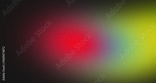 Abstract glowing color spots, spotlight grainy backdrop design. Red green purple color, wave shaped noisy gradient on dark, vibrant color flow, bright, shine, poster, banner, header, cover