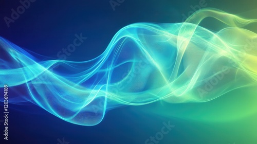 Abstract Glowing Flowing Waveforms, Dark Blue to Green Gradient Background.