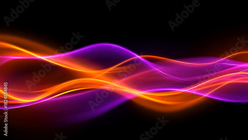 Abstract glowing lines of orange and purple color on a black background