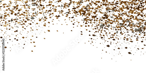 abstract golden color star and doted spotted confetti during holiday celebration template on white background. Concept for Studio shot, holiday celebration event vector illustration.