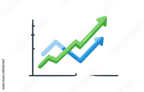 Abstract graph with two upward trending lines on black background