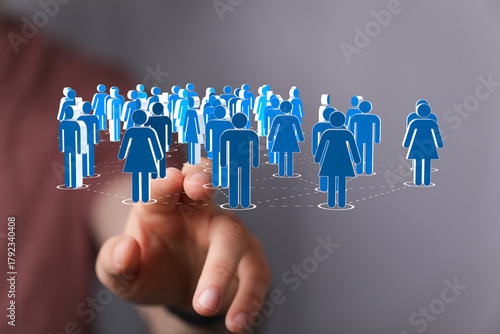 Abstract graphic of individuals, teamwork, networking, connections, and community, representing human interaction in the digital space. Concept
