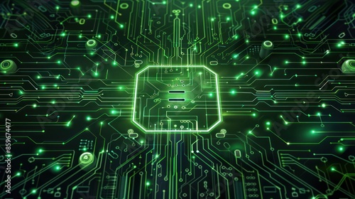Abstract green circuit board with many small lights on it background