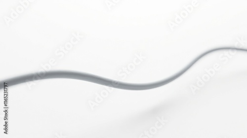 Abstract Grey Cable Gently Curving on White Background