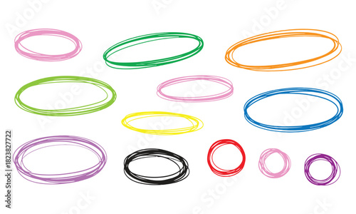 Abstract hand-drawn colorful scribble marker highlight circles and ovals vector illustration set