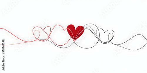 Abstract heart design with red heart and black and red lines.