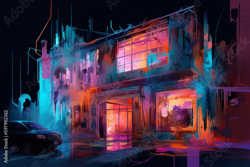 Abstract House on Fire Colorful Neon Painting Generative AI