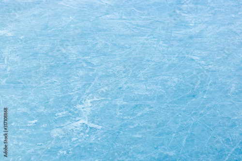 Abstract ice texture. Nature blue background. Traces of blades of skates on ice