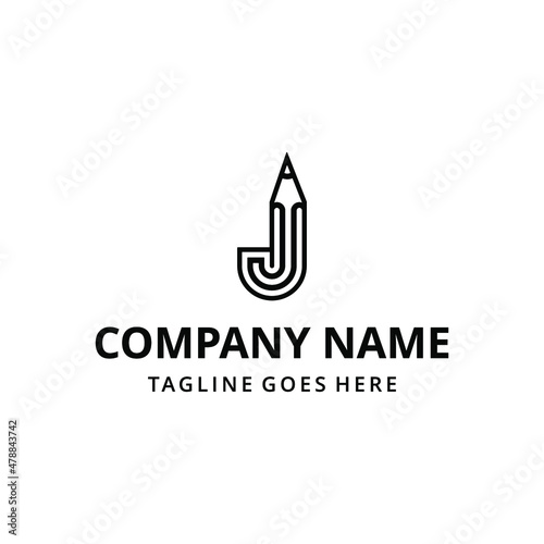 Abstract illustration of initial pencil shape J. geometric vector logo design template