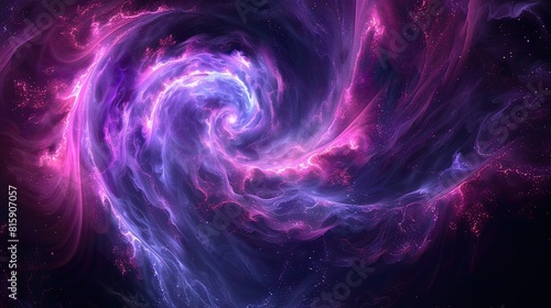 Abstract image of neon light lines swirling in a cosmic dance. With bright colors contrasting with the dark starry sky, the concept of quantum physics.