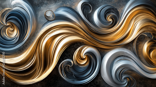 Abstract image of swirls, intricate swirling lines forming elegant patterns of gold and silver