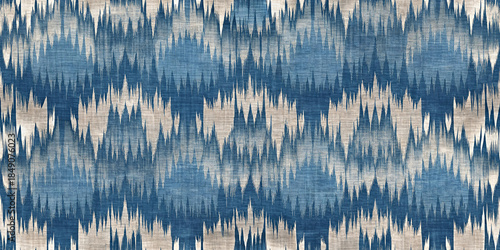 Abstract indigo and ecru ikat seamless pattern background with blurry zig zag lines