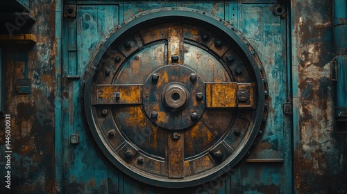 Abstract industrial door, weathered steampunk metal with intriguing rusty texture
