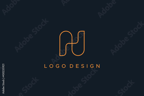 Abstract Initial Letter N Logo. Gold Geometric Line Infinity Style isolated on Blue Background. Usable for Business and Branding Logos. Flat Vector Logo Design Template Element.