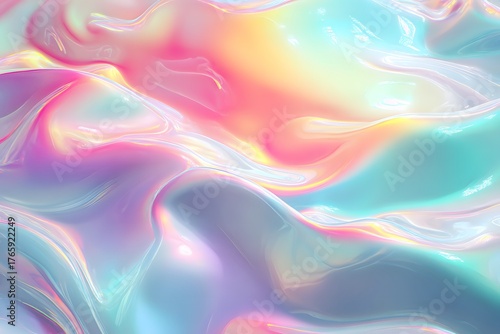Abstract iridescent waves with pastel colors creating a smooth and flowing texture effect design