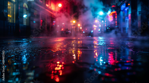 Abstract light in a dark empty street with smoke, smog