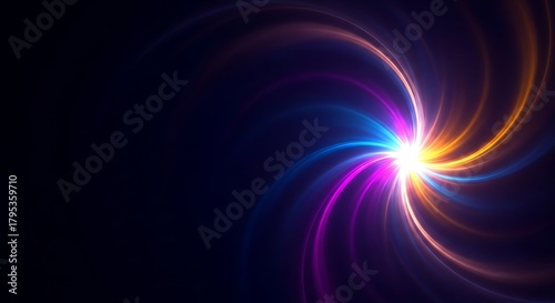 Abstract light streaks radiate from a central point on dark