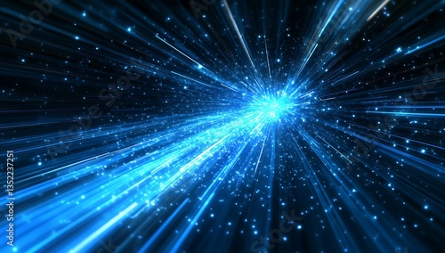 abstract light trails in blue and orange creating a dynamic motion effect against a dark starry background