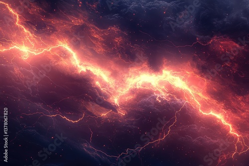 Abstract lightning strike with anime-style background. AI generated illustration.