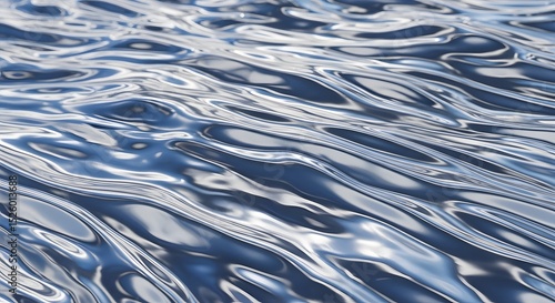 Abstract Liquid Metal Texture: Blue and Silver Waves
