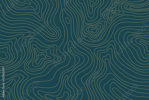 Abstract luxury topographic map background. Gold topographic lines on a dark blue background