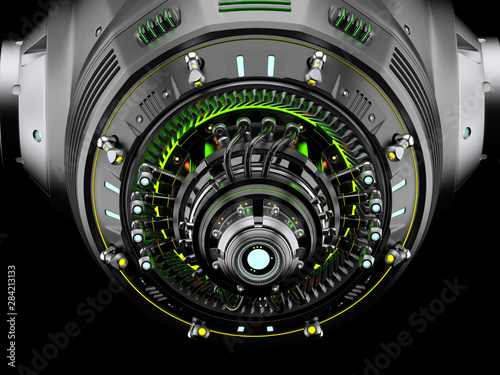 abstract mechanism or futuristic technology. Alien scanner. Isolated on black background. 3d render