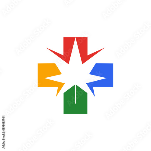 Abstract Medical Cannabis Logo: White Leaf in Colorful Cross