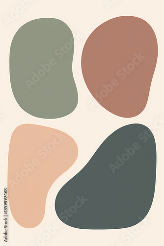 Abstract minimalist art with organic fluid shapes in earthy tones, modern scandinavian style geometric pattern for wall art and decor.