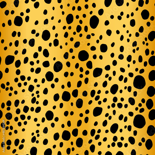 Abstract modern dalmatian fur seamless pattern. Animals trendy background. Black and golden decorative vector illustration for print, card, postcard, fabric, textile. Modern ornament of stylized skin