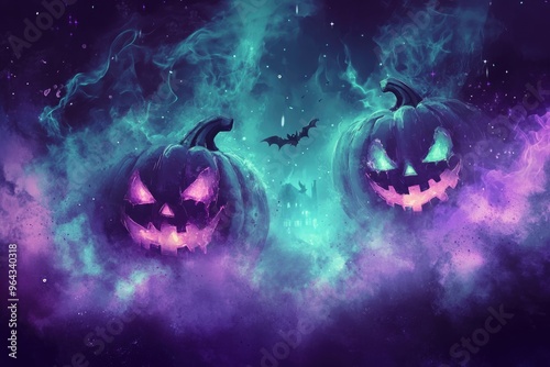Abstract modern dark purple and green glitter sparkle Spooky Halloween magic trick treat night, ai generated