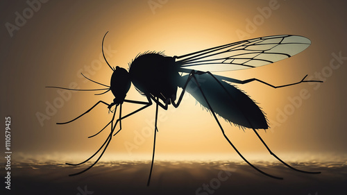 Abstract mosquito silhouette dissolving into light, symbolizing global efforts and progress in combating malaria.
