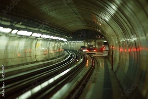Abstract motion blur photo of subway road, monorail, train station