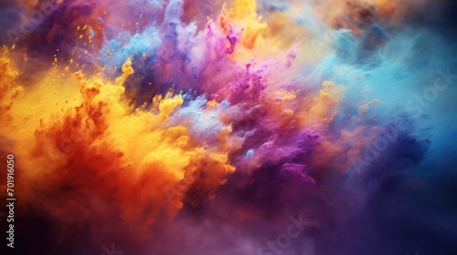 Abstract multi colored powder explosion, Colorful dust explode. Painted Holi powder festival.