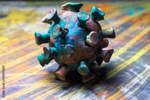abstract multicolored figures from plasticine coronavirus on multicolored background
