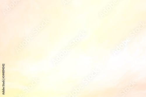 Abstract nature blurred background of gradient colorful golden pink & yellow sky with wispy smoke & clouds in tropical summer or spring morning sunlight & sun rays, exotic holiday vacation concept