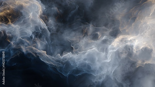 Abstract Nebula Clouds with Light Streaks, Atmospheric Blue and Gold Texture
