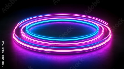 Abstract neon background with glowing lines and a glow effect on a black backdrop. Vector illustration of a retro laser light in blue, pink, and purple colors for a party poster or night club banner
