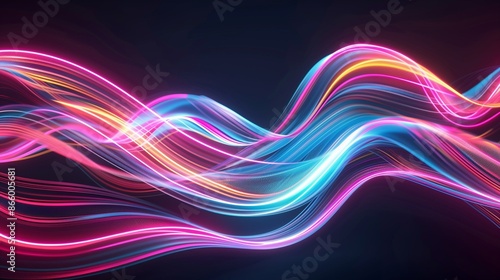 Abstract neon background with waves, lines, curves. Bright light. Neon lighting, signboard. Bright dark backdrop