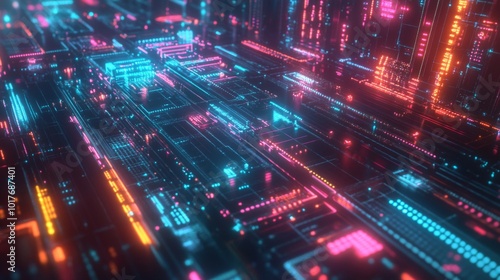 Abstract Neon Circuitry Pattern with Pink, Blue, and Orange Glowing Lines