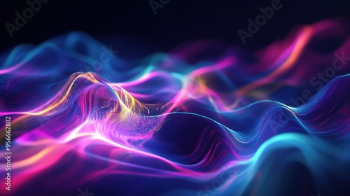 Abstract Neon Waves Background - Blue, Pink, and Yellow Swirling Light Design.